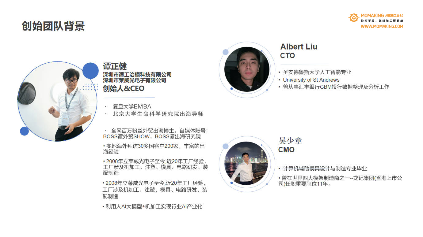 一站式手板打样和CNC零件机加工柔性生产智造平台(www.momaking.com)和大模型PEKTS-MoE加工平台Saas系统“超级厂长”为公司两大板块主营业务。